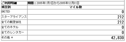 陸(おか)マイラーという言葉、最近になって出てきた言葉です 昨年はスターアライアンスの搭乗が1往復だけ、という寂しい結果で飛行機に乗らずにマイルをためる人の総称です。クレジットカードのポイントや、提携各社のマイレージキャンペーンなどを中心にマイルをためることで「タダ乗り」を目指すわけです 参考になるページを2,3ご紹介しておきます ◆参考URL 今さら人に聞けない!マイレージって何?(All About) 陸マイラーのマイレージ研究 但し、これは搭乗回数が少ない人向けです 何故ならばJALもANAもそうなのですが、日系のマイレージプログラムはいわゆる自社および提携航空会社を利用するパックツアーでの加算マイルが実航マイルの50%に減免されてしまいます。これに対しUA(ユナイテッド航空)やNW(ノースウェスト航空)などのマイレージプログラムは自社および提携航空会社の殆どのパックで70~100%のマイルが加算されます。旅行する地域がヨーロッパやアメリカなどの長距離になればなるほど、この換算率の差が大きく響きます ◆参考URL 航空会社マイレージ比較(比較.com) ↓参考に社員(や)のUAのマイル明細書(05年1月1日~12月31日)を… 搭乗マイルは殆どありませんでした 昨年はクレジットカードの利用が殆どです PR |