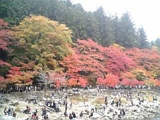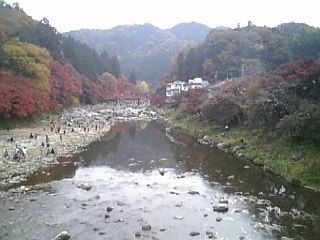 「まるでお祭りの縁日のような人の多さ」 私自身、香嵐渓に来たのは今回で3回目でしたが、秋の紅葉の時期に来るのは初めてでした。香嵐渓近くのバス駐車場まではバスでスムーズに来れたのでまだあまり人は来ていないかと思っていたんですが 香嵐渓付近は人、人、人 巴川を渡るための待月橋は長蛇の列。渓谷美の雰囲気は京都の嵐山や宇治の感じに近いが、こじんまりとした町にすごい密集度。この時期こそが町にとっては年間の中でのかきいれ時なんでしょう 私が見たバスのナンバープレートは東は宇都宮、西は徳島。ざっとみても東海随一の紅葉の名所は中部圏はもとより関東圏、関西圏、中国四国圏からのお客様をどっと迎え入れていました。11/23(祝)、例年より遅くやってきた2006年の紅葉の見頃の1日でした 以上、添乗員Oからの報告でした |